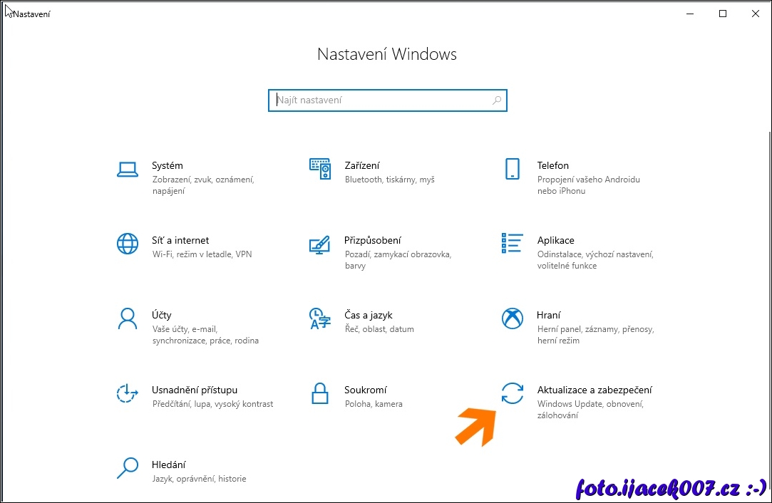 Windows 10 nastavení Aktualizace a zabezpečení