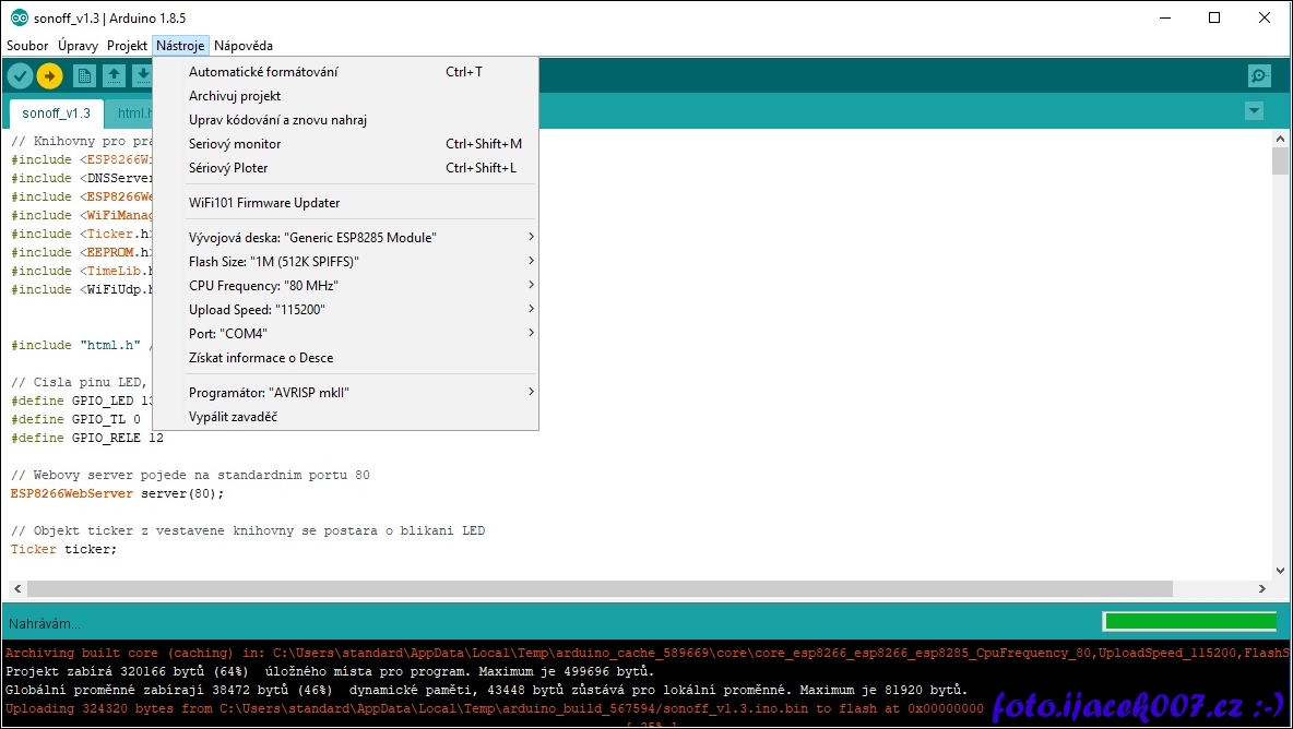 arduino prostředi a sonoff basic