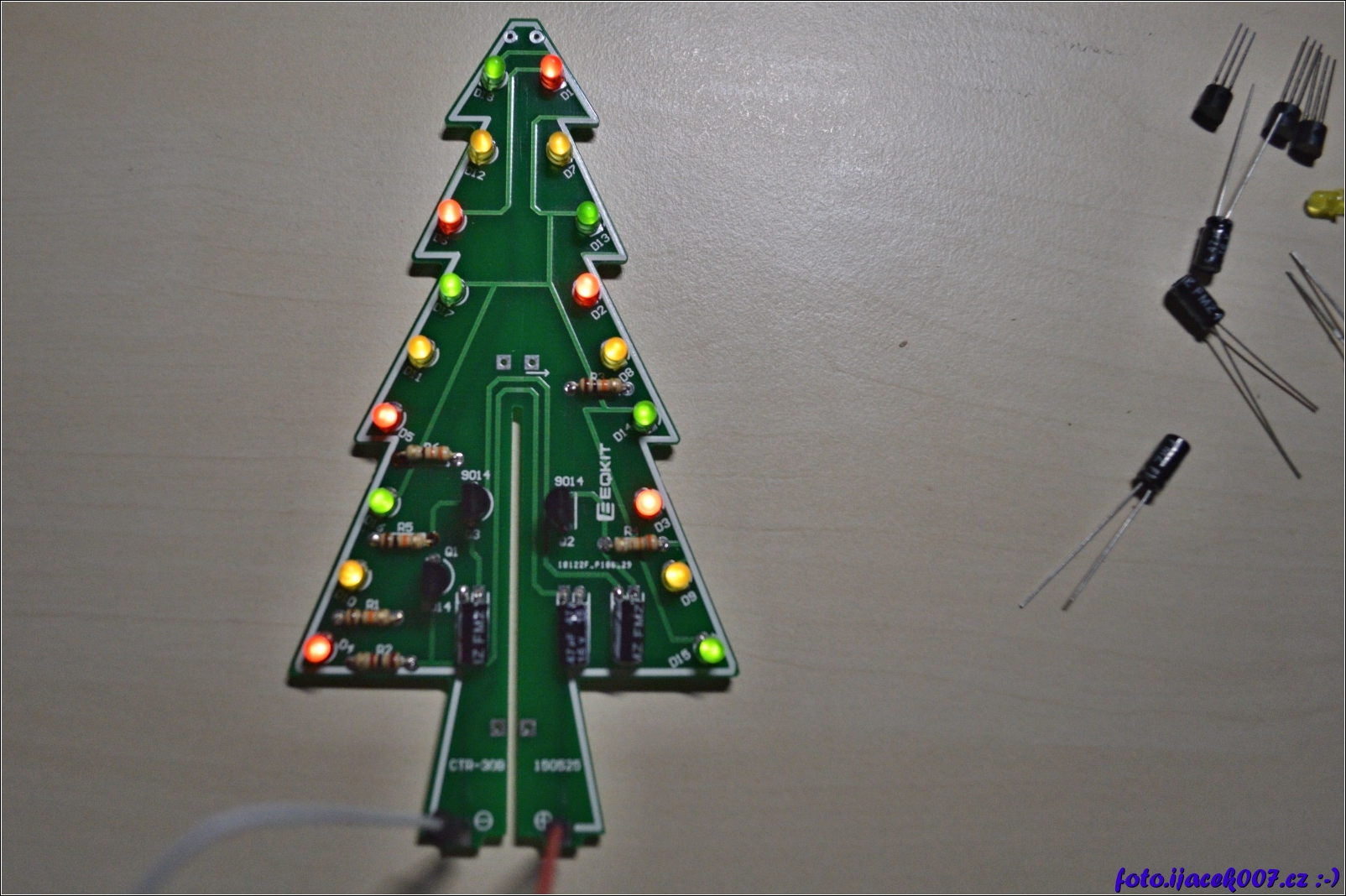 pohled na desku osázenou součástkami
