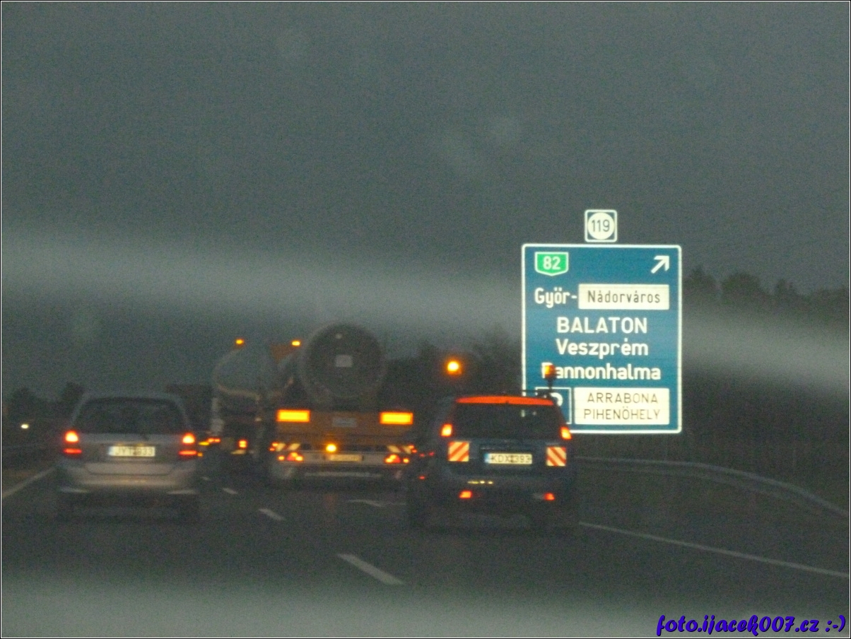 pohled na nadmrný náklad na dálnici v Maďarsku