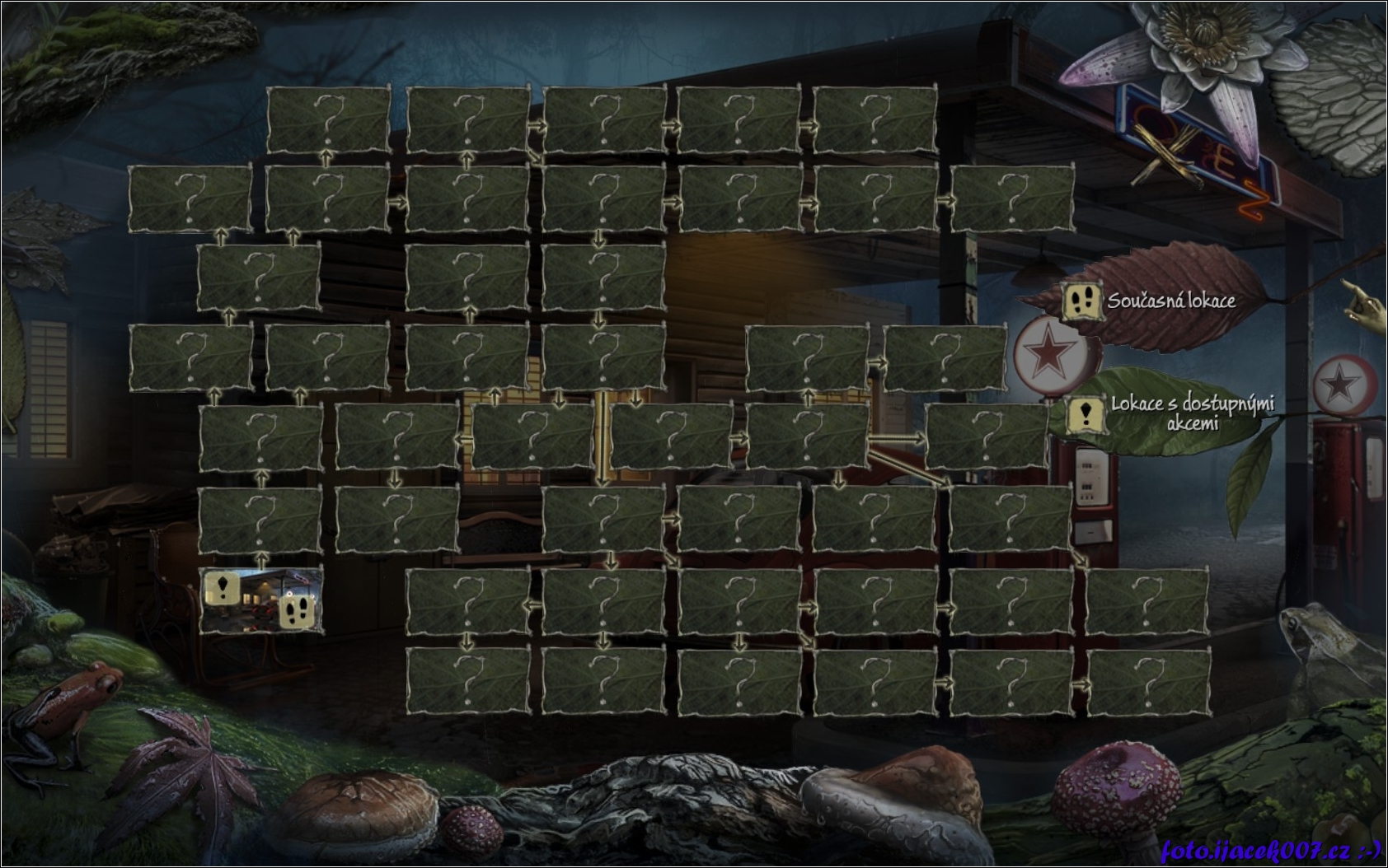 Pohled na mapu a zároveň seznam lokací