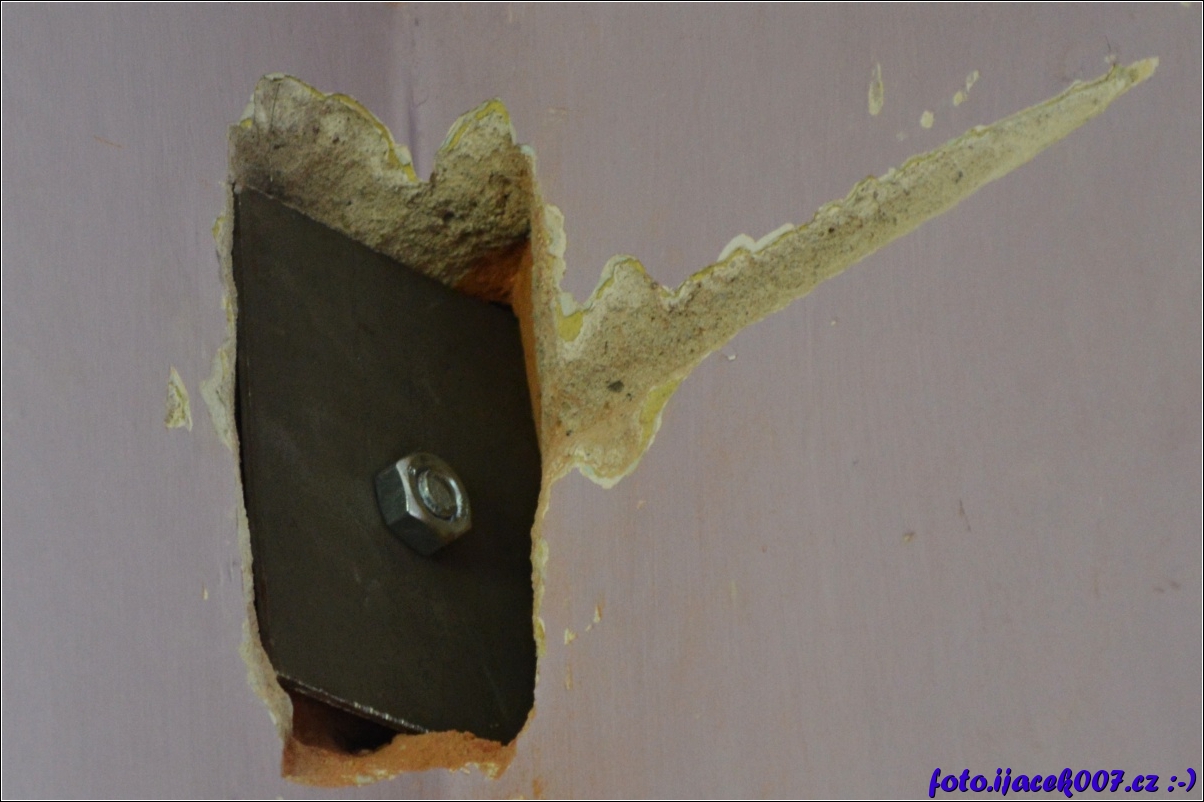 pohled na zasekanou podložku s maticí z druhé strany zdi