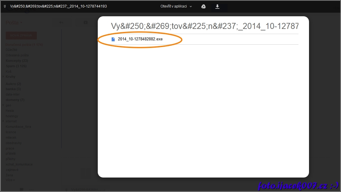rozbor podvodné přílohy je vidět že obsahuje exe soubor