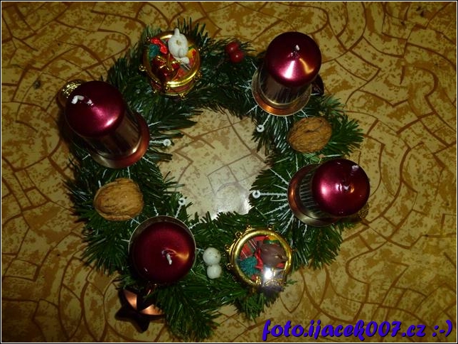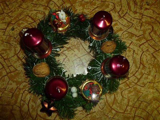adventní věnec s vínovýmy svíčkami