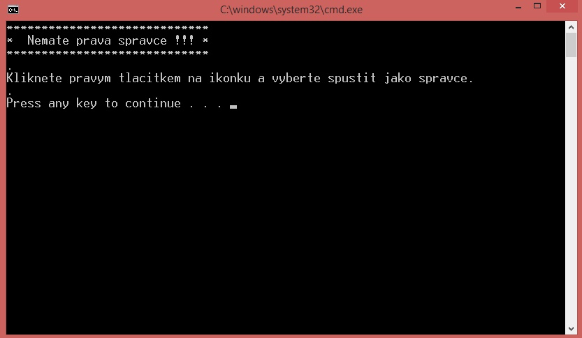 skript spuštěn bez práv správce.