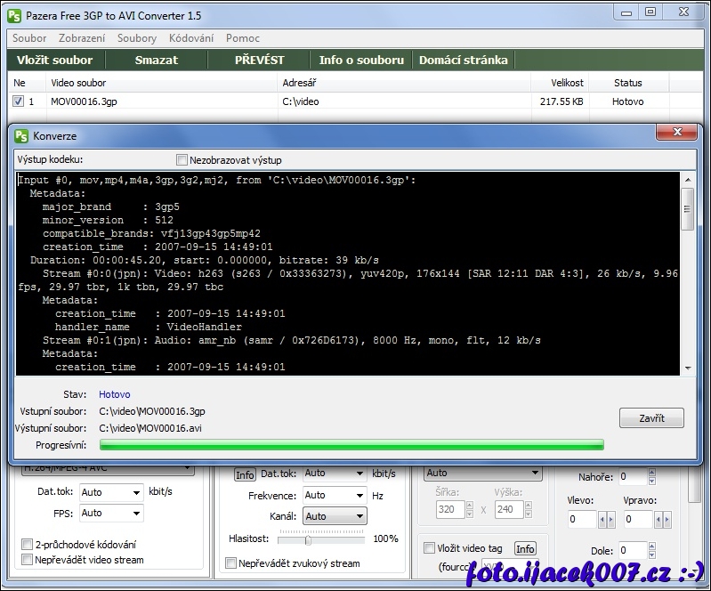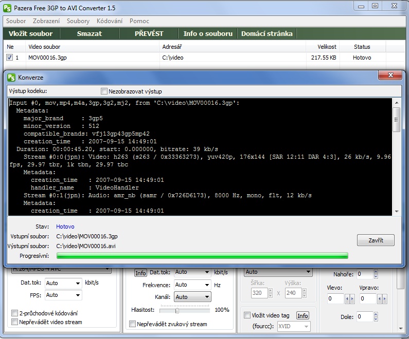 probíhající převod videa