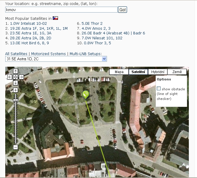 směr na satelit astra z krnovského náměstí