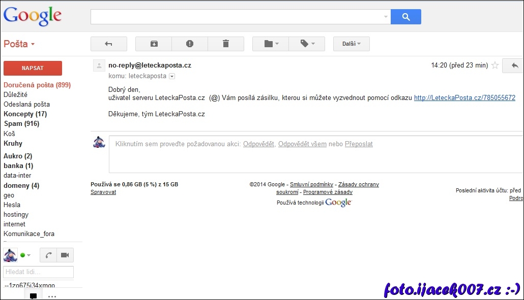 email od letecké pošty