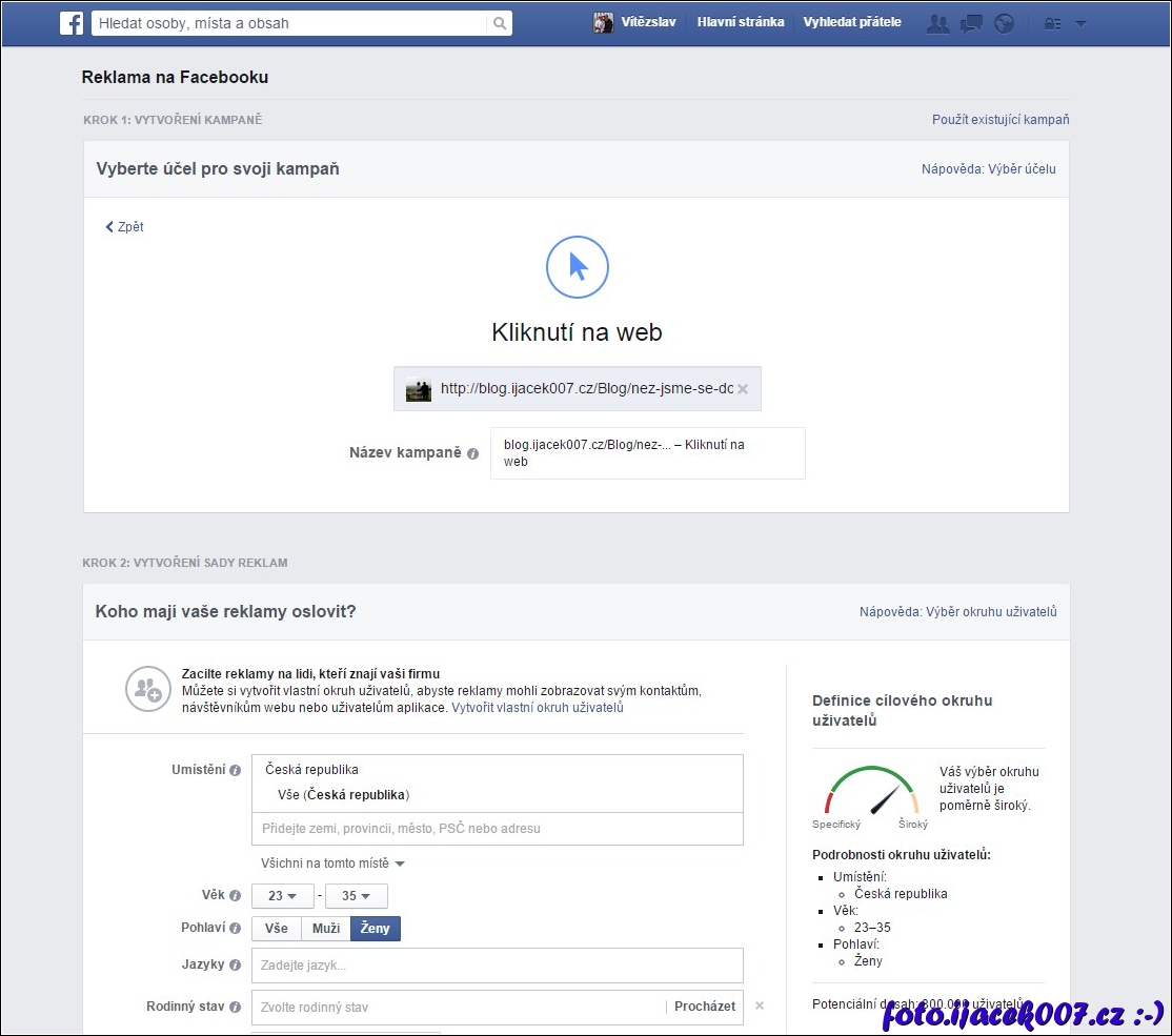 nastavení facebook reklamy