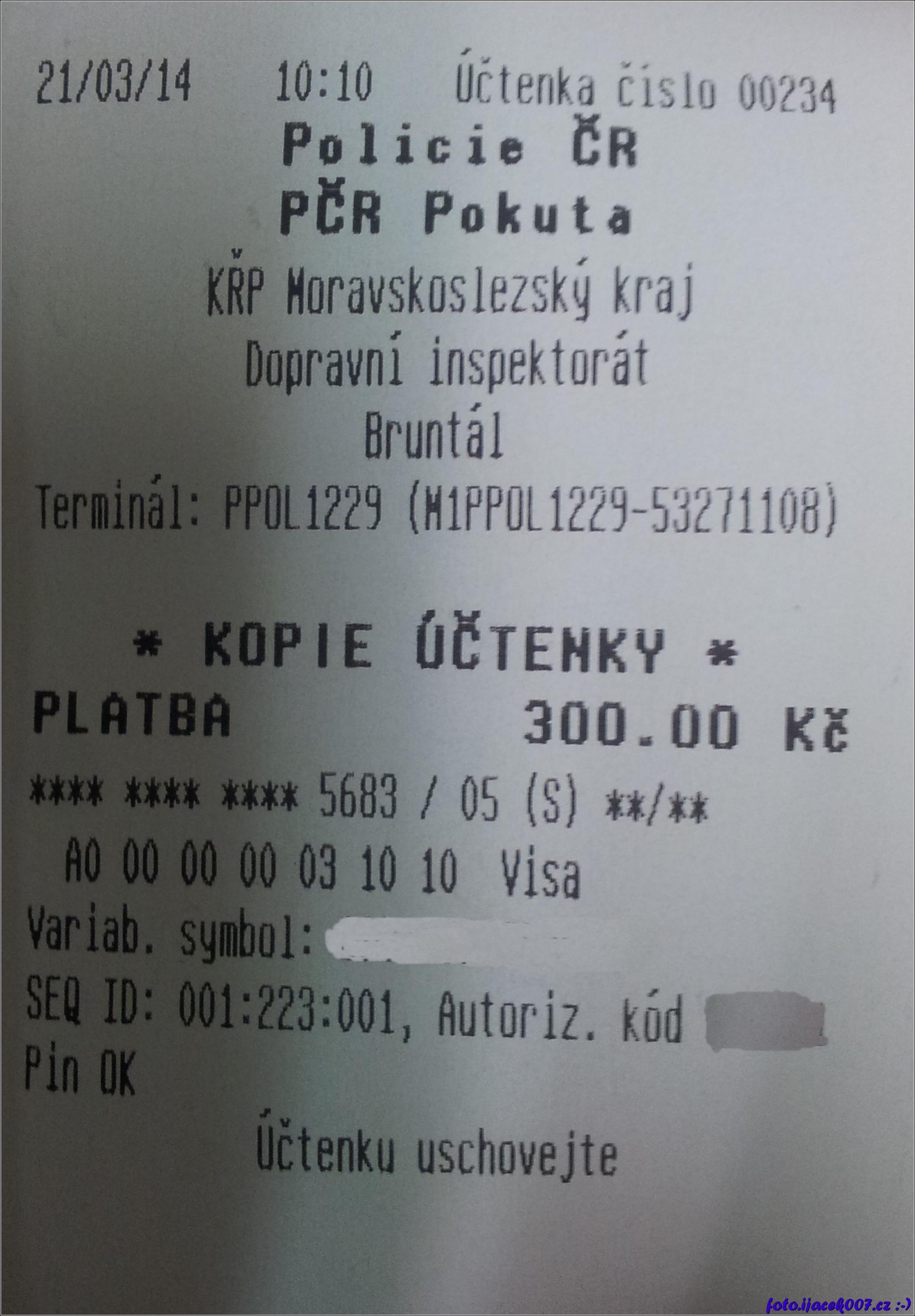 účtenka platebního terminálu placení 300 korunové pokuty jde i kartou