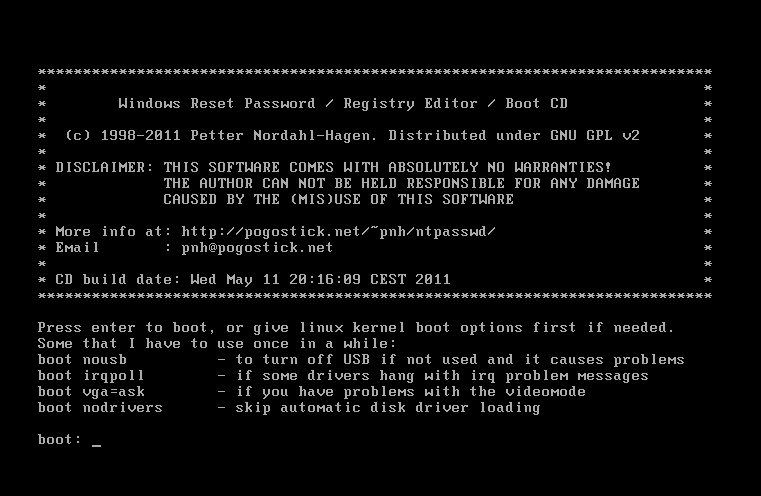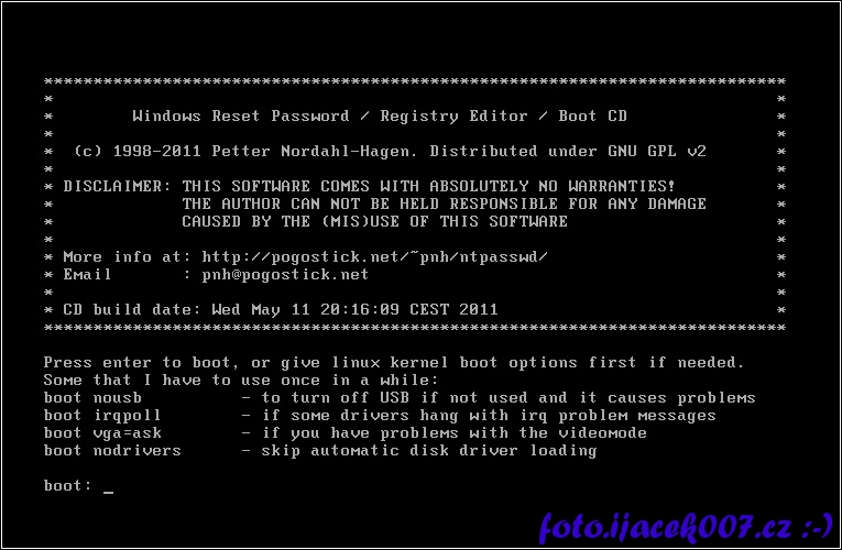 boot obrazovka při startu cd