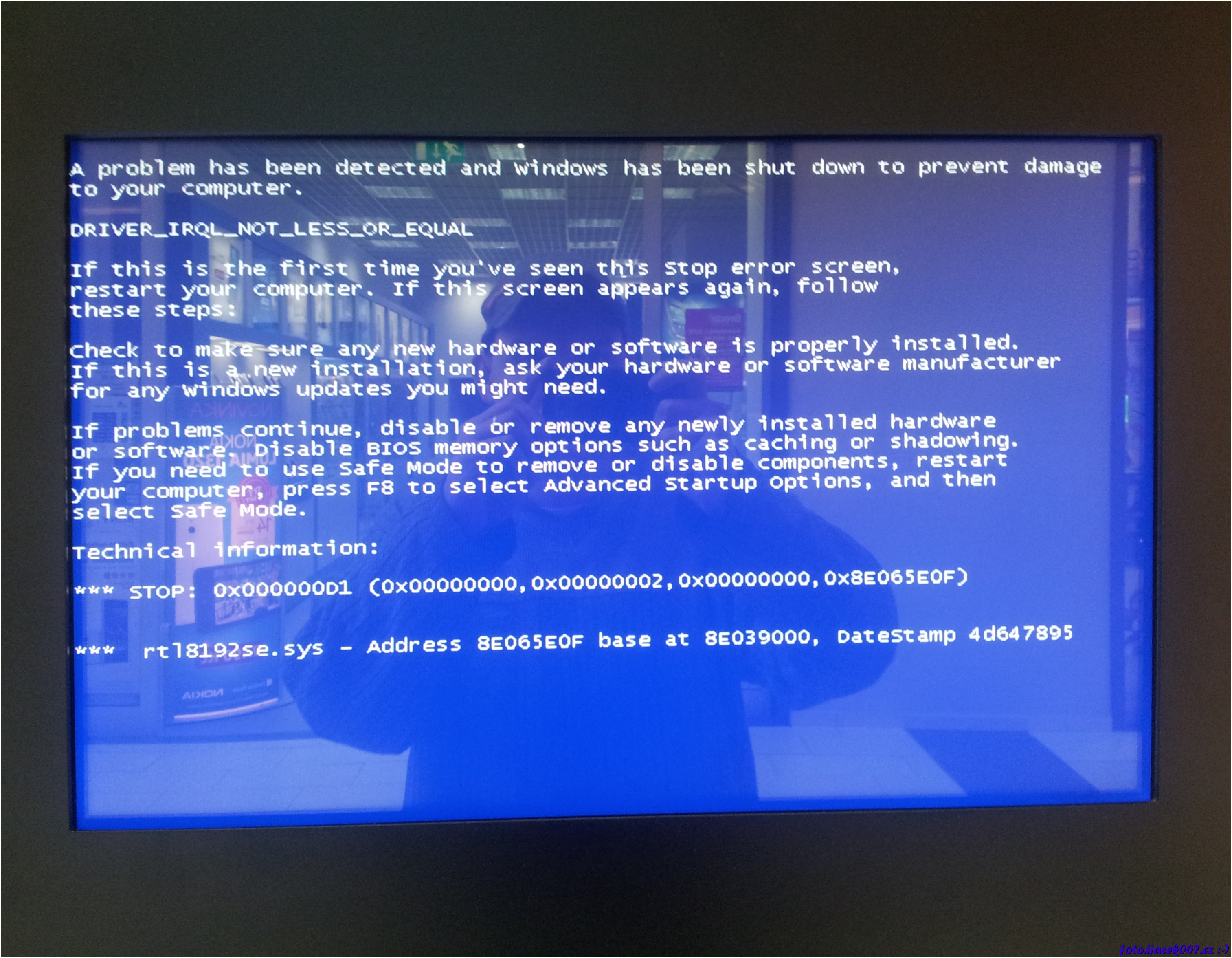 detail modré obrazovky