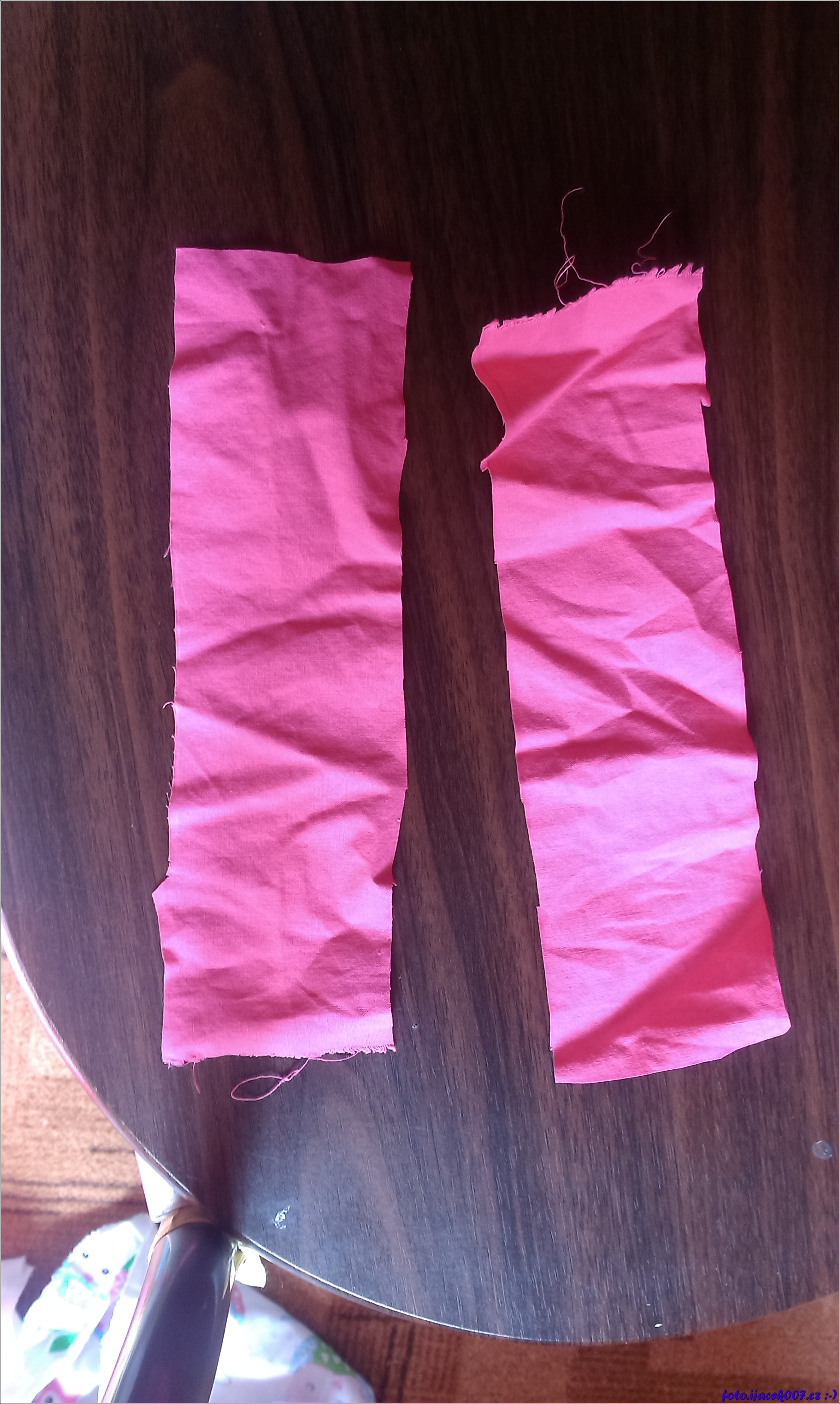 Dva pruhy látky které budou tvořit držáky.