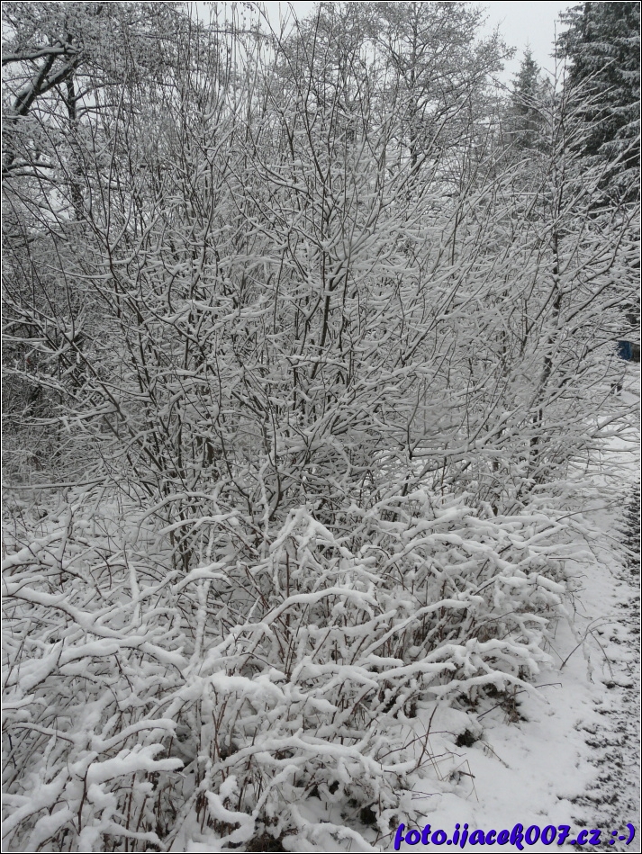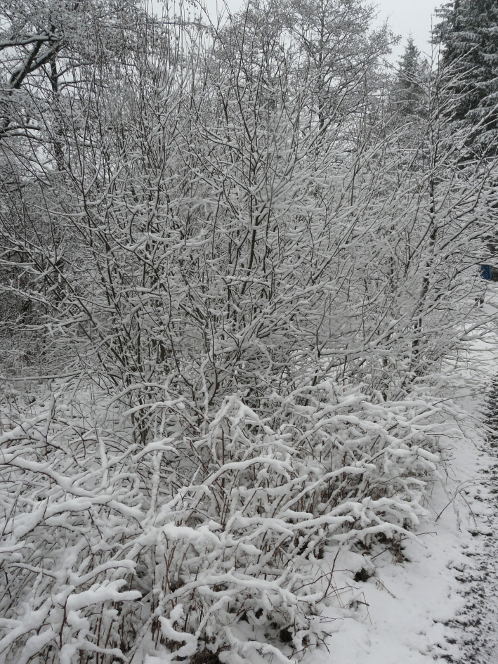 keře pod sněhem