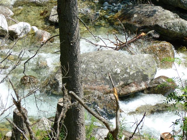 poda tříštící se o kameny