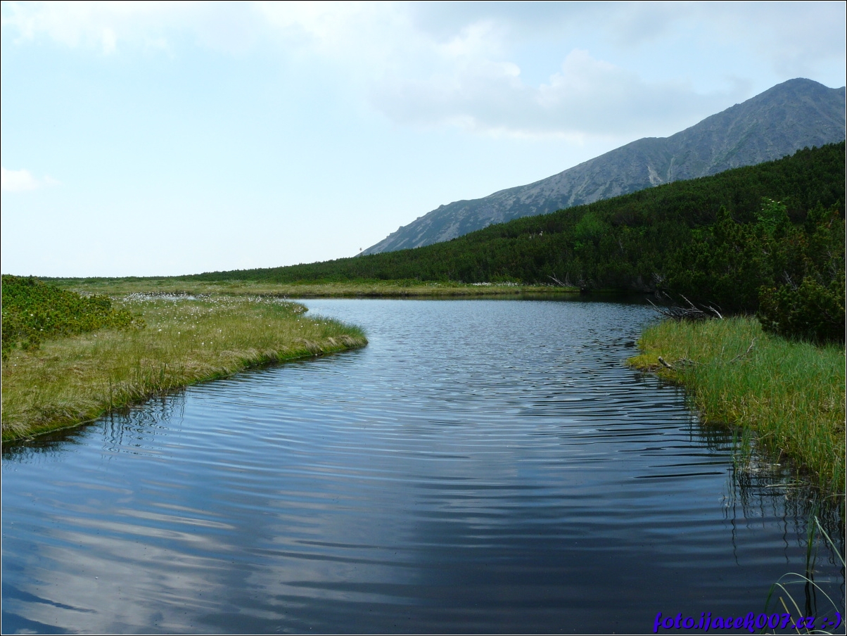 Pleso plné rašeliny kousek od velkého bílého plesa